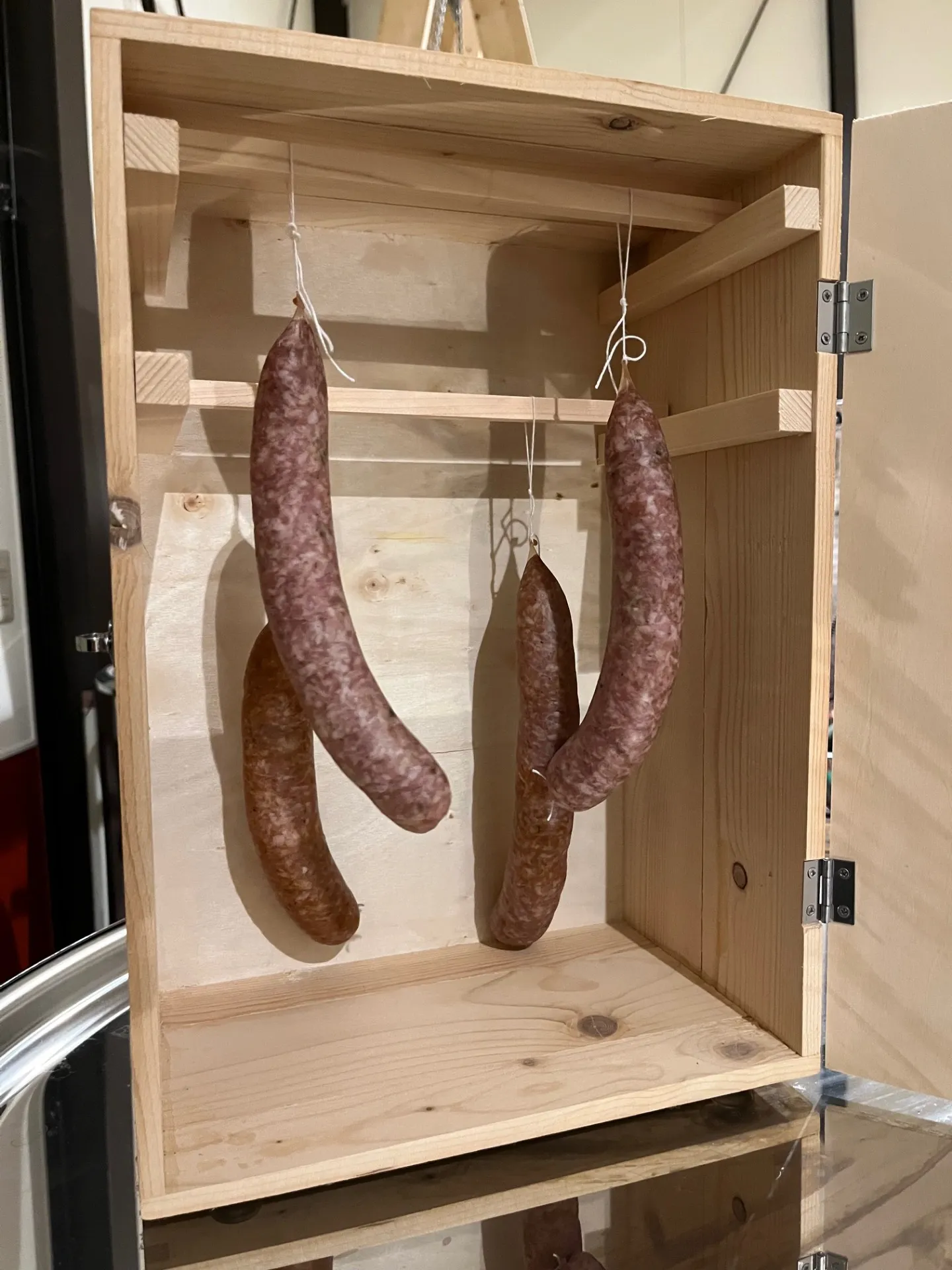 当然それなりに設備も必要で、先日のブログの通り日本政策金融公庫に融資をお願いしてみたのですが、あっさり却下!安価なもので代用したり、手作りしたり。。これではまともに食肉加工業者の資格を得るには難しそうですが、自分で楽しんだり、食事に来て頂いたお客様にその場でお出しするには問題ないのだから、まずはそれでやってみましょう。